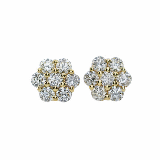 14Kt Gold 1.43 Ct Diamond Cluster Earrings