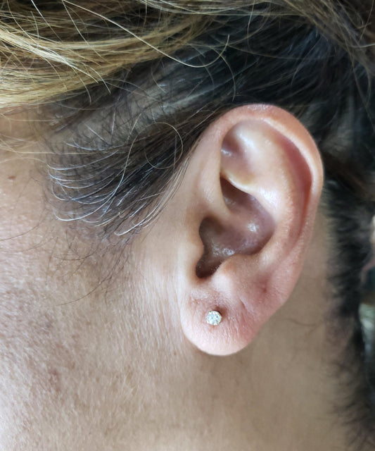 14Kt Yellow Gold 1/6 Ct Genuine Natural Diamond Round Stud Earrings