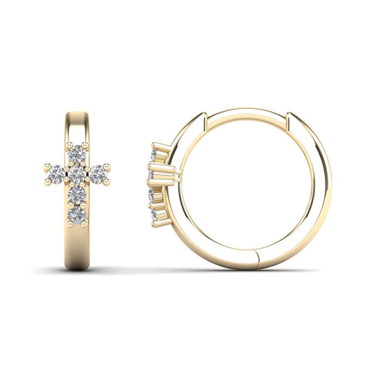 14Kt Yellow Gold 0.12 Ct Genuine Natural Diamond Cross Huggie Earrings