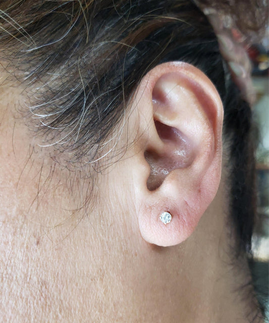 14Kt White Gold 0.10 Ct Genuine Natural Diamond Round Stud Earrings