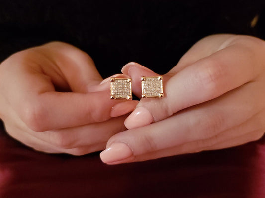 14Kt Yellow Gold 0.30 Ct Genuine Natural Diamond Square Stud Earrings
