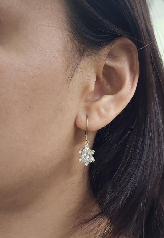 14Kt Gold 1.58Ct Lab Grown Diamond Pear Teardrop & Round Dangle Earrings