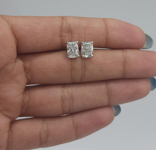 14Kt Gold 2 Ct IGI Certified Lab Grown Radiant Cut Diamond Studs Earrings