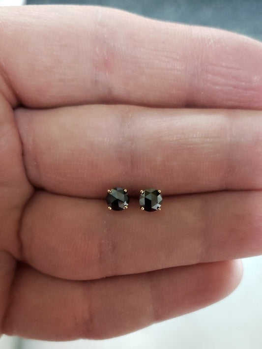 14Kt Gold 1Ct Rose Cut Natural Black Diamond Stud Earrings