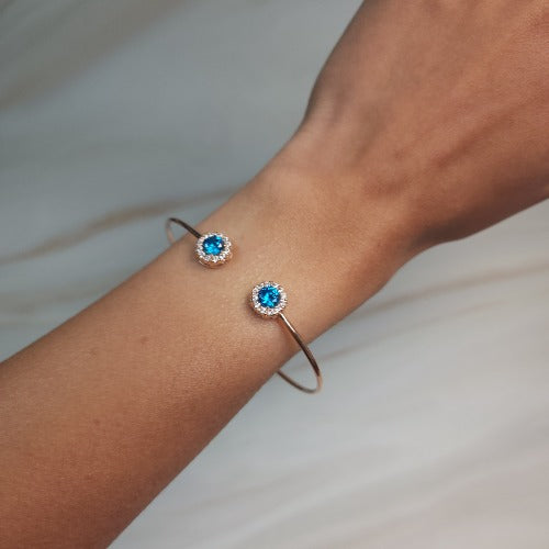 1 Ct Swiss Blue Topaz Halo Design Round Bangle Bracelet 14Kt Yellow Gold Rose Gold Silver