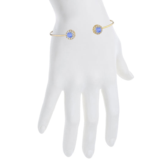 1 Ct Tanzanite Halo Design Round Bangle Bracelet 14Kt Yellow Gold Rose Gold Silver