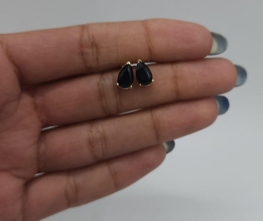 14Kt Gold Natural Black Onyx Teardrop Pear Shape Stud Earrings