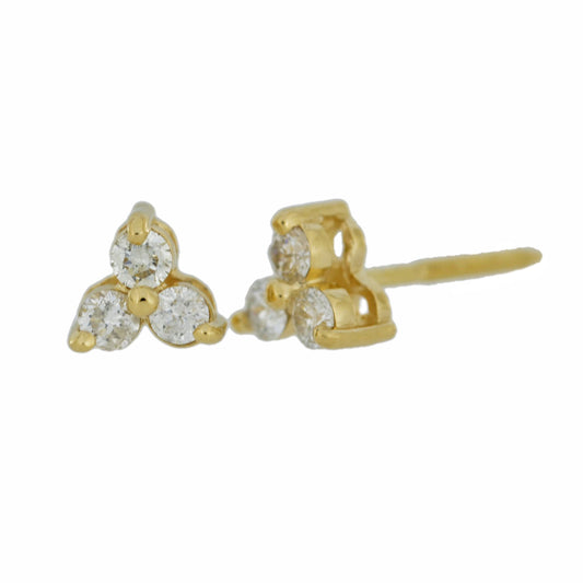14Kt Gold 0.24 Ct Genuine Natural Diamond 3 Stone Stud Earrings