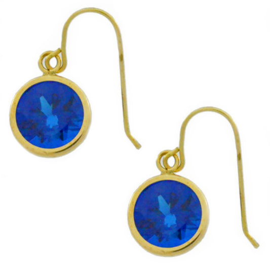 14Kt Yellow Gold Blue Sapphire 8mm Round Bezel Dangle Earrings