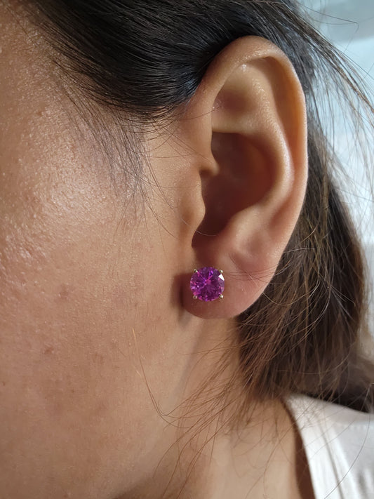 14Kt Yellow Gold Pink Sapphire Round Stud Earrings
