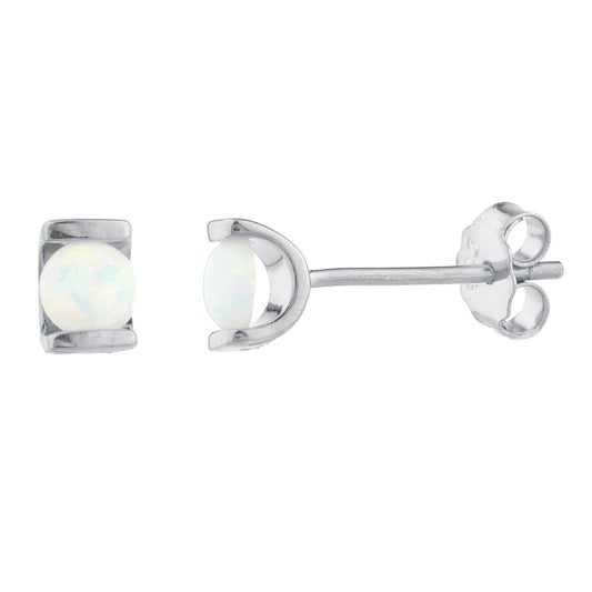 Opal Half Channel Stud Earrings .925 Sterling Silver