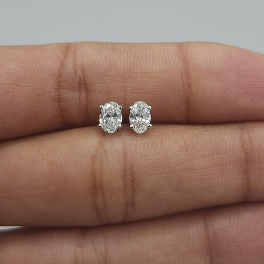 14Kt Gold 0.50 Ct Oval Lab Grown Diamond Stud Earrings