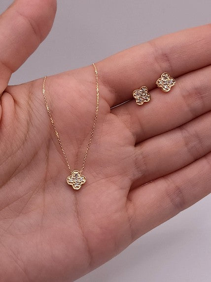 14Kt Gold Genuine Natural Diamond Clover Pendant Necklace