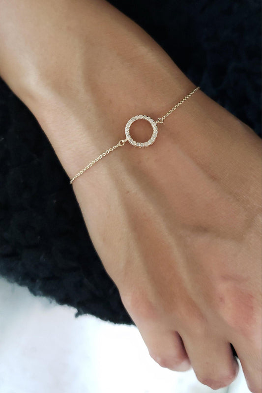 14Kt Gold Genuine Natural Diamond Open Circle Bracelet