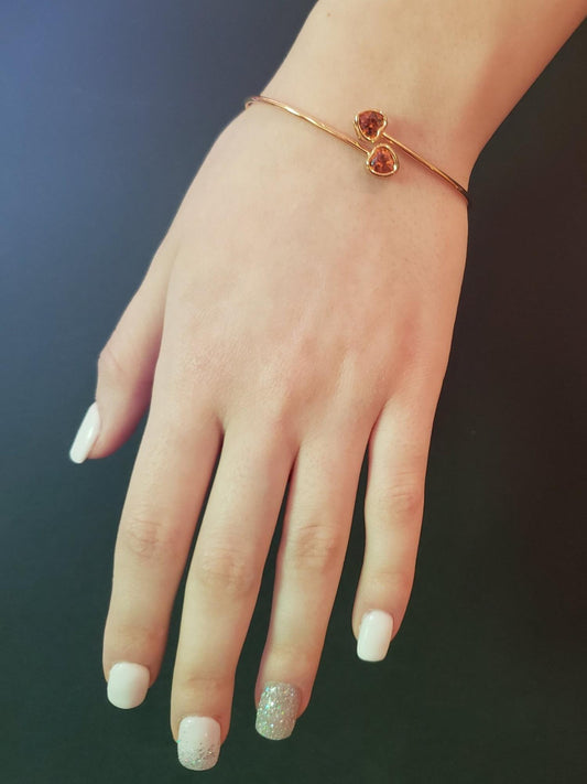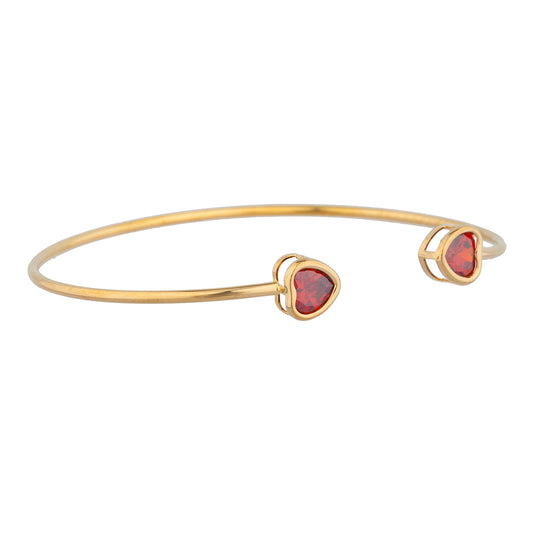 14Kt Gold Garnet Heart Bezel Bangle Bracelet