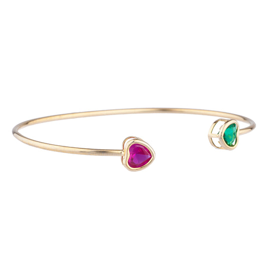 14Kt Gold Created Ruby & Emerald Heart Bezel Bangle Bracelet