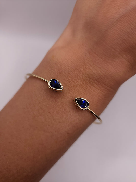 14Kt Gold Blue Sapphire Pear Bezel Bangle Bracelet