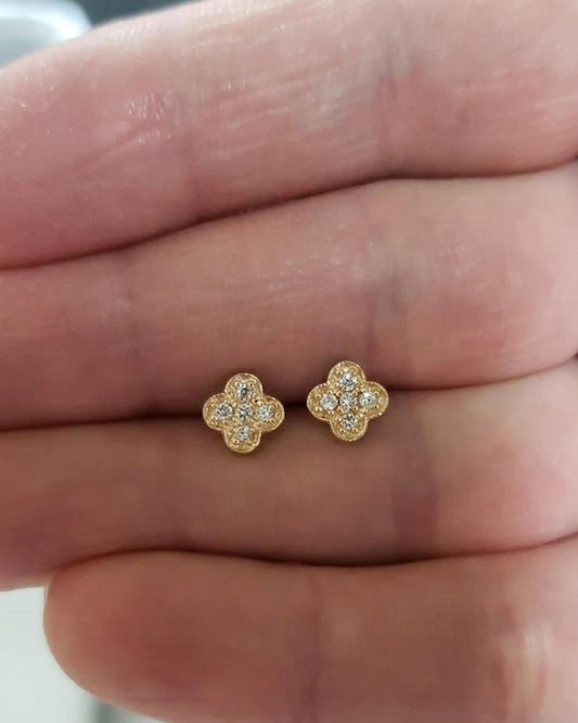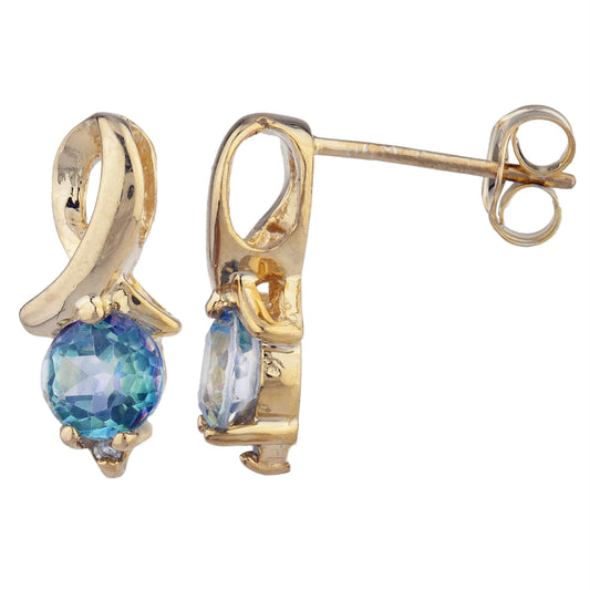 14Kt Gold Natural Blue Mystic Topaz & Diamond Round Design Stud Earrings
