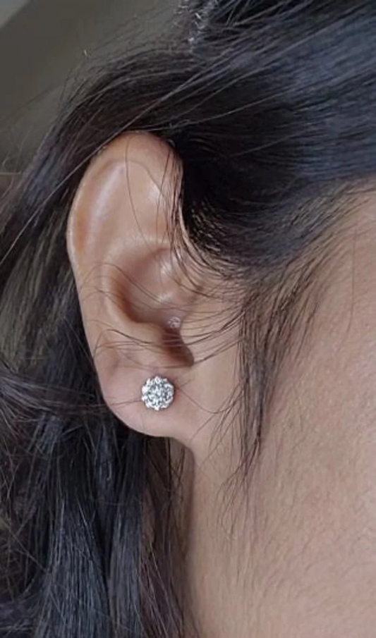 14Kt White Gold 1/3 Ct Genuine Natural Diamond Round Stud Earrings