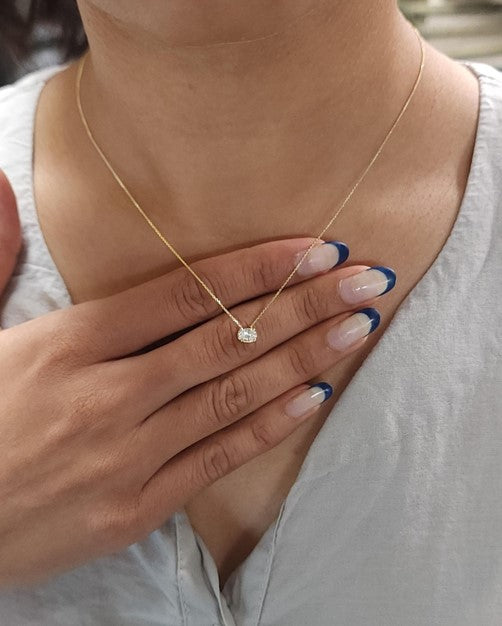 14Kt Gold 0.27 Ct Attached Lab Grown Diamond Oval East West Solitaire Pendant Necklace