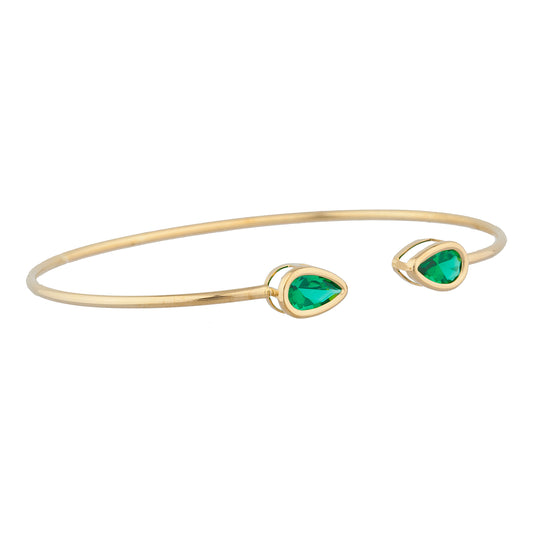 14Kt Gold Emerald Pear Bezel Bangle Bracelet