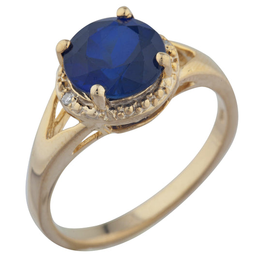 14Kt Gold 2 Ct Blue Sapphire & Diamond Halo Design Round Ring