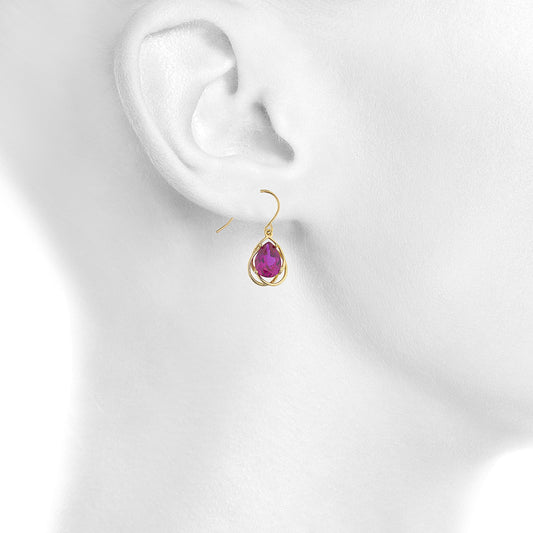 14Kt Gold 4 Ct Created Ruby Pear Teardrop Design Dangle Earrings