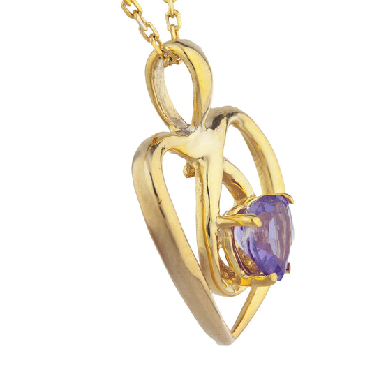 14Kt Gold Amethyst Heart Design Pendant Necklace