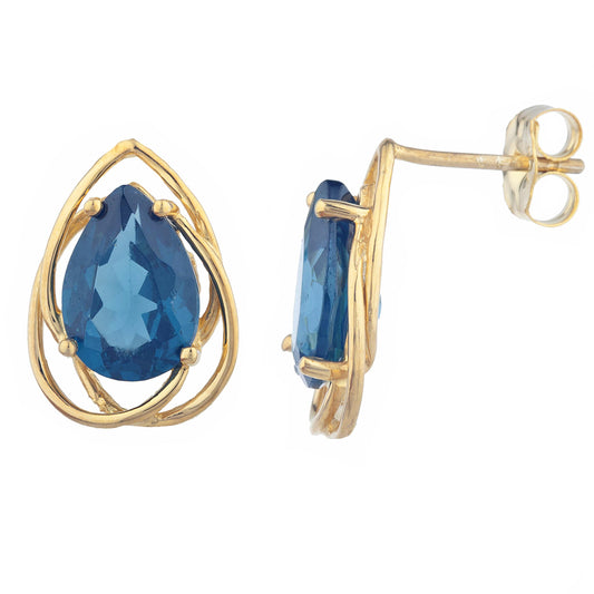 14Kt Gold 4 Ct London Blue Topaz Pear Teardrop Design Stud Earrings