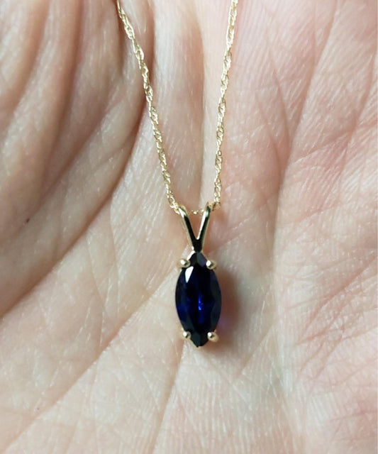 14Kt Gold Blue Sapphire Marquise Pendant Necklace