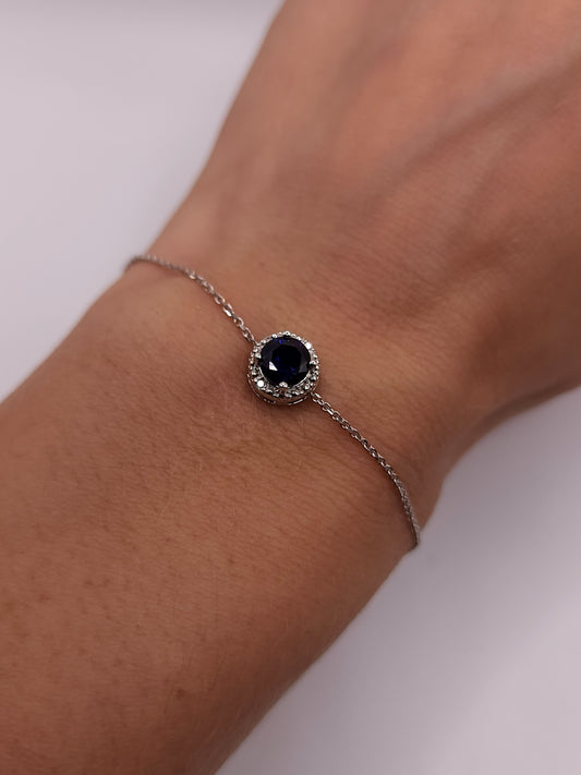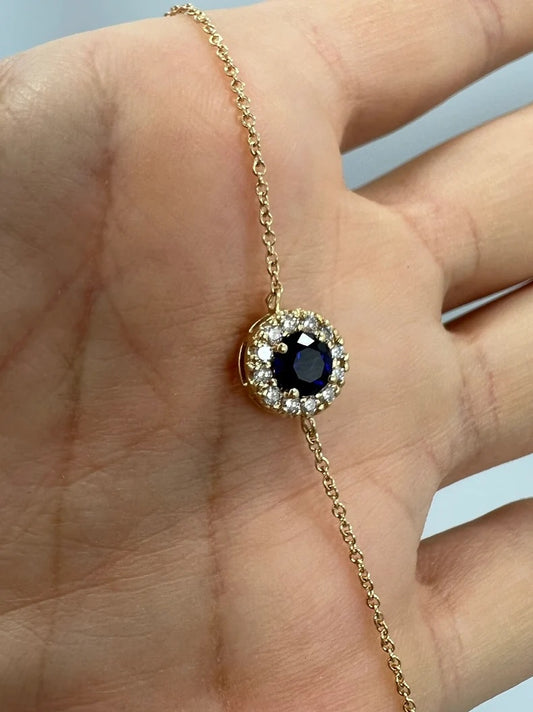 14Kt Gold Blue Sapphire Halo Bracelet