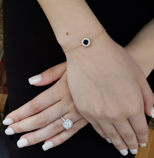 14Kt Gold Blue Sapphire & Diamond Round Bracelet