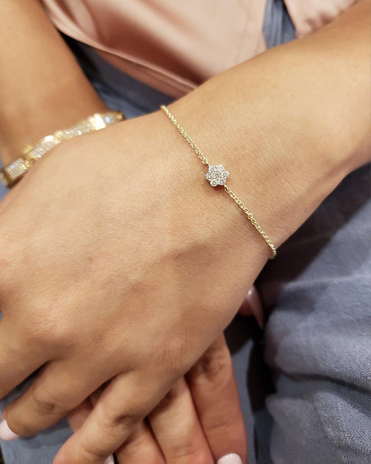 14Kt Gold 0.21 Ct Genuine Natural Diamond Cluster Bracelet