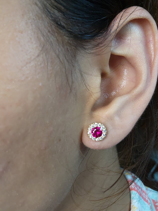 14Kt Gold 1 Ct Created Ruby Halo Design Stud Earrings