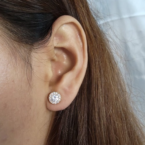 14Kt Gold 1 Ct Zirconia Halo Design Stud Earrings