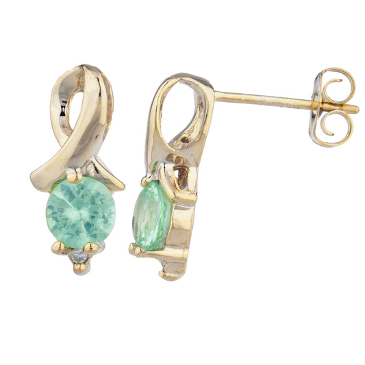 14Kt Gold Green Sapphire & Diamond Round Design Stud Earrings
