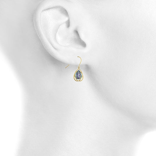 14Kt Gold 4 Ct Natural Mystic Topaz Pear Teardrop Design Dangle Earrings