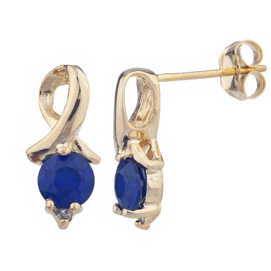 14Kt Gold Blue Sapphire & Diamond Round Design Stud Earrings