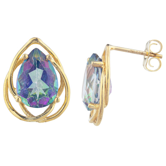 14Kt Gold 4 Ct Natural Mystic Topaz Pear Teardrop Design Stud Earrings