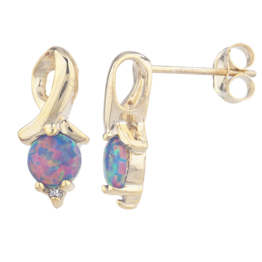 14Kt Gold Black Opal & Diamond Round Design Stud Earrings