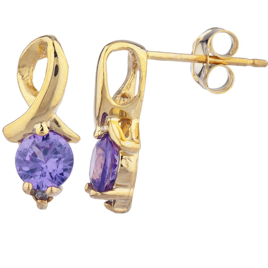 14Kt Gold Alexandrite & Diamond Round Design Stud Earrings