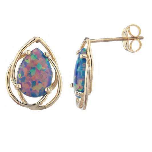 14Kt Gold Black Opal Pear Teardrop Design Stud Earrings