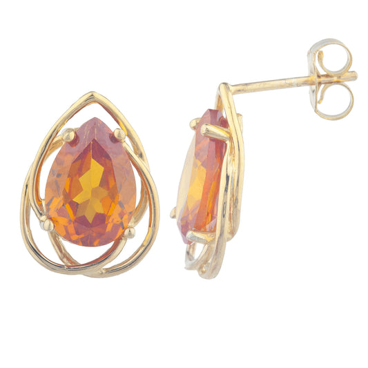 14Kt Gold 4 Ct Orange Citrine Pear Teardrop Design Stud Earrings