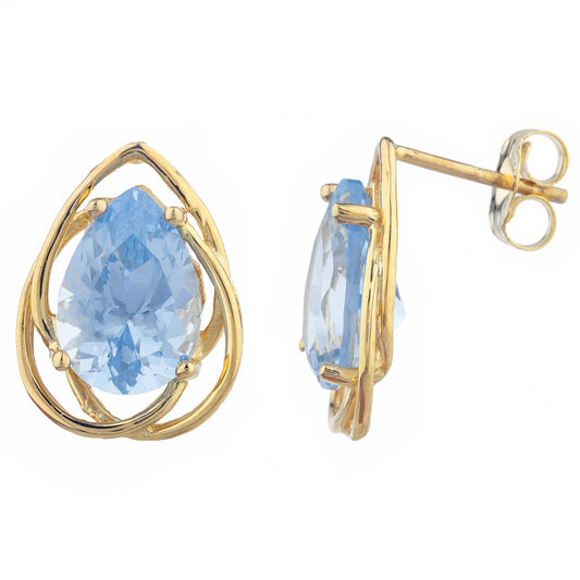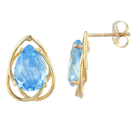 14Kt Gold 4 Ct Blue Topaz Pear Teardrop Design Stud Earrings