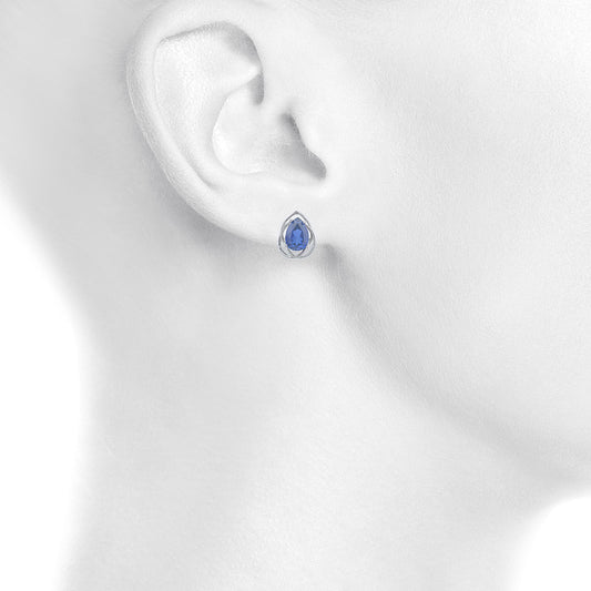 14Kt Gold 4 Ct Blue Sapphire Pear Teardrop Design Stud Earrings