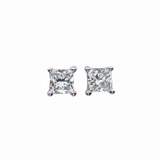 14Kt Gold 1 Ct Lab Grown Princess Cut Square Diamond Stud Earrings