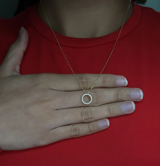 14Kt Gold Open Circle Lab Grown Diamond Cluster Pendant Necklace