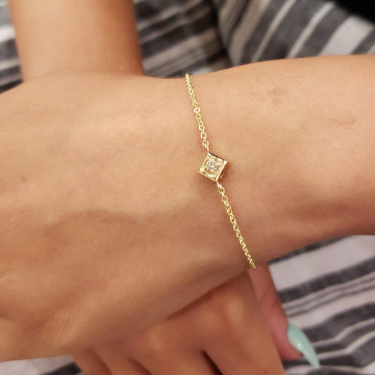 14Kt Gold Genuine Natural Diamond Square Design Bracelet