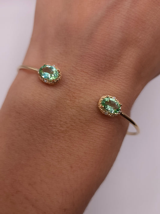 14Kt Gold Peridot & Diamond Oval Bangle Bracelet