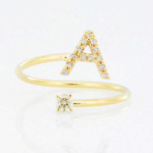 14Kt Gold Genuine Natural Diamond Initial Ring